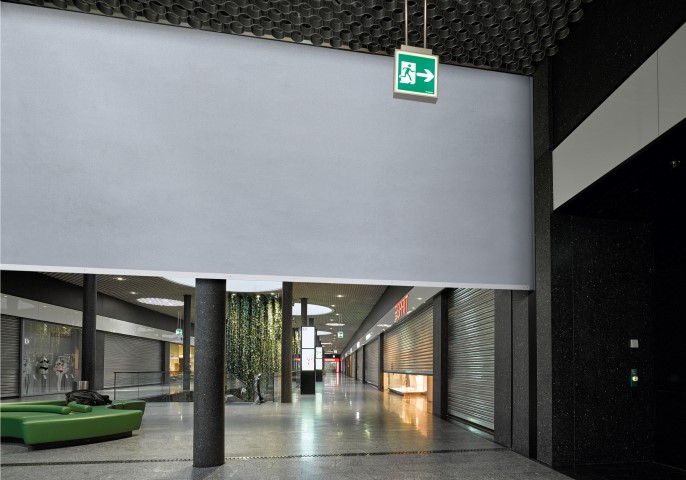 Montaż tekstylnej kurtyny przeciwpożarowej zaleca się szczególnie w takich obiektach, jak hotele, budynki użyteczności publicznej, biura lub domy towarowe. Kurtyna przeciwpożarowa FlexFire firmy Hörmann nadaje się w szczególności do sytuacji montażowych, w których instalacja bramy jest niemożliwa ze względu na ograniczoną ilość wolnego miejsca.